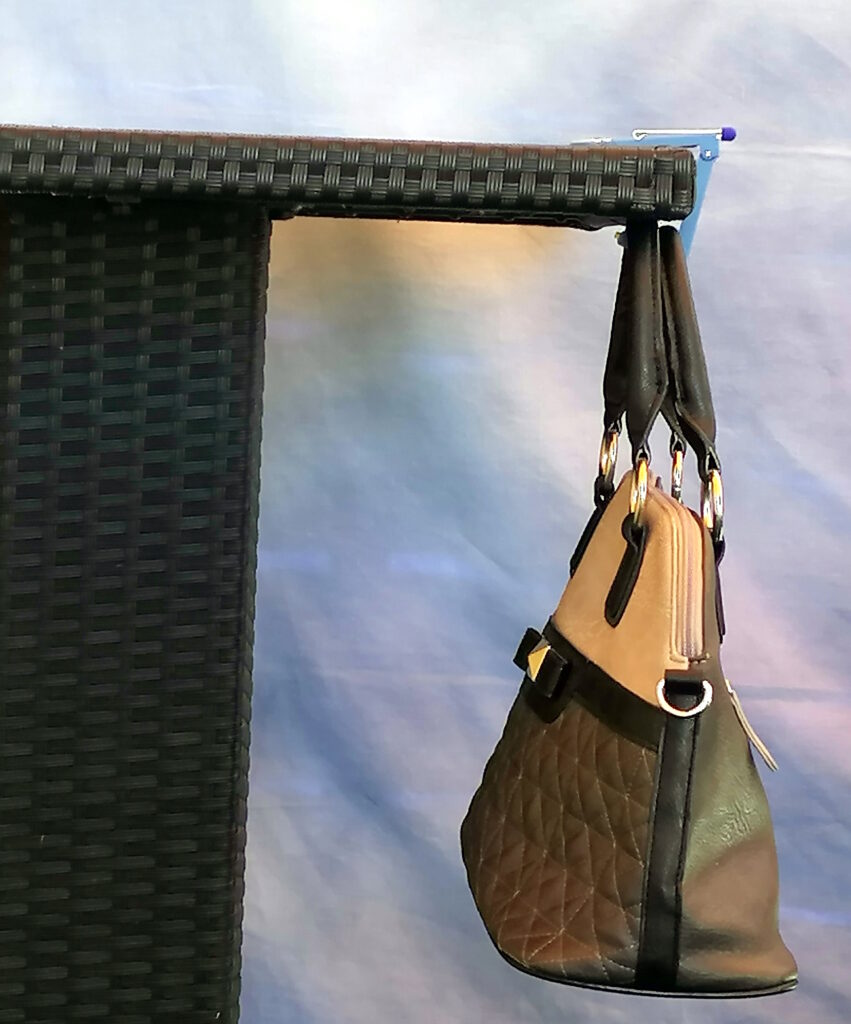 Bagelix, der völlig neu entwickelte, multifunktionale Aufhänger für Hand- und Einkaufstaschen ist die Lösung ! Mit Bagelix hängen Sie Ihre Hand- oder Einkauftasche an eine Tischkante direkt in Ihrer Nähe